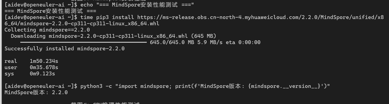 echo "=== MindSpore安装性能测试 ==="