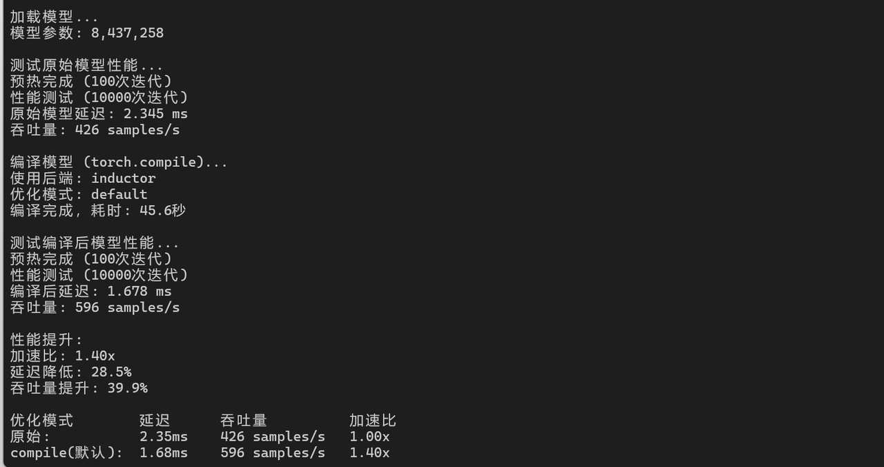 print(f"编译后推理延迟: {compiled_latency:.3f} ms")