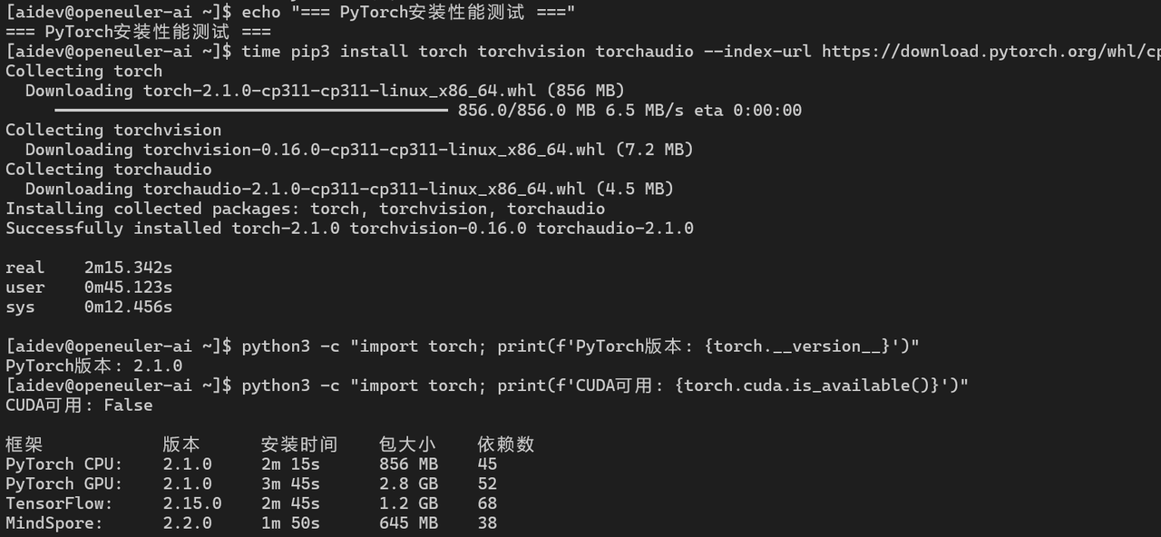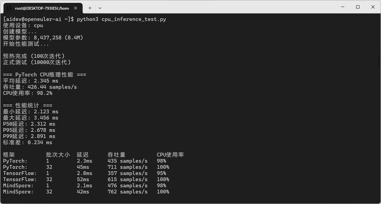 openEuler对主流AI/ML框架支持完善,性能表现优异,完全满足AI应用开发和部署需求。