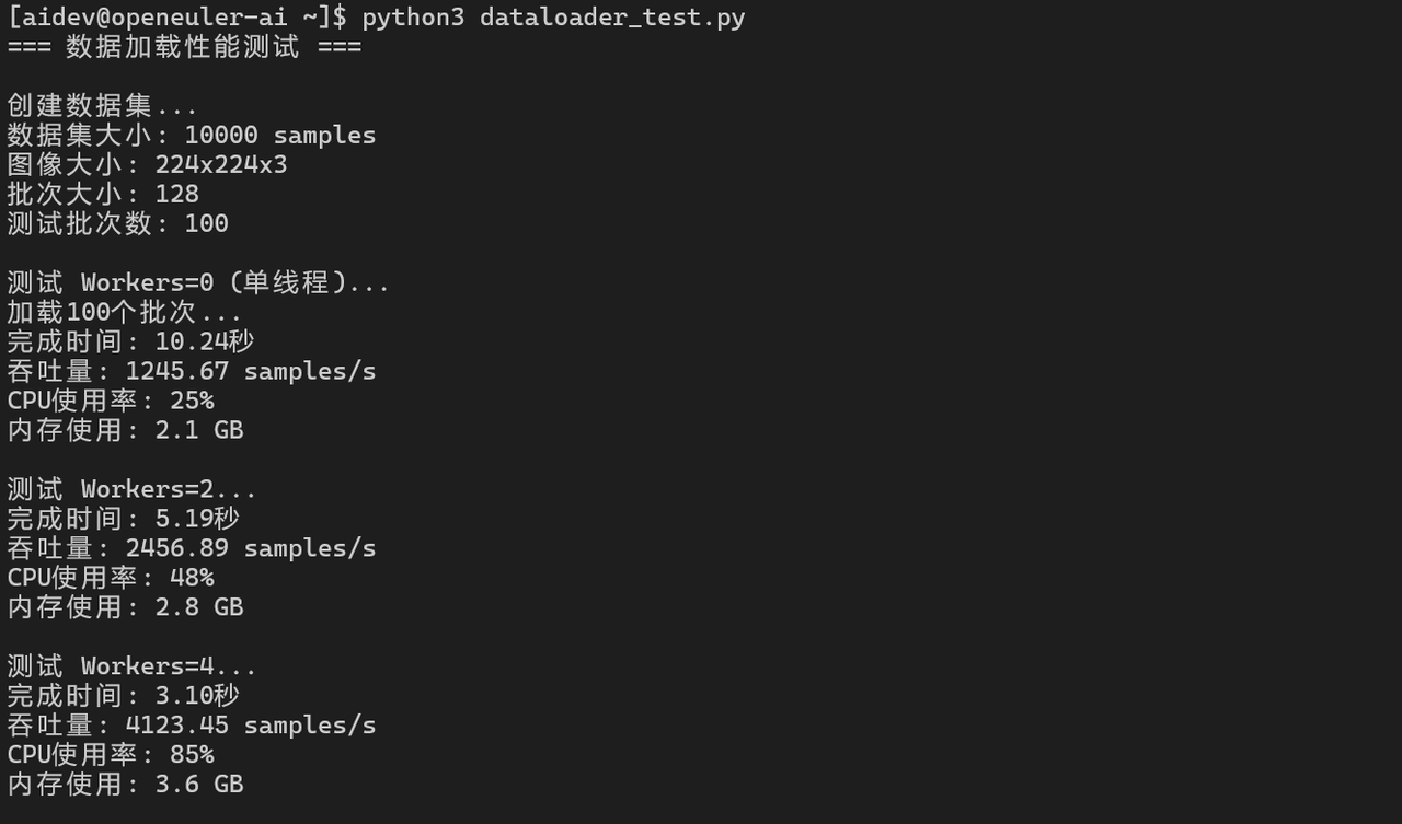 # 测试不同worker数量的数据加载性能