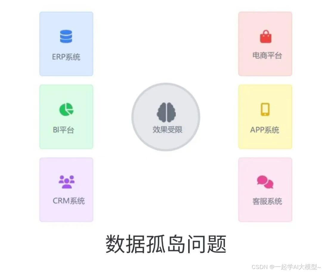 企业AI转型过程中,“数据孤岛”是一个普遍存在的痛点。生产数据、客户数据、财务数据分散在ERP、CRM、MES等不同系统中,口径不一、质量参差不齐,这使得AI模型难以获得高质量数据,其分析和预测能力也因此大打折扣。