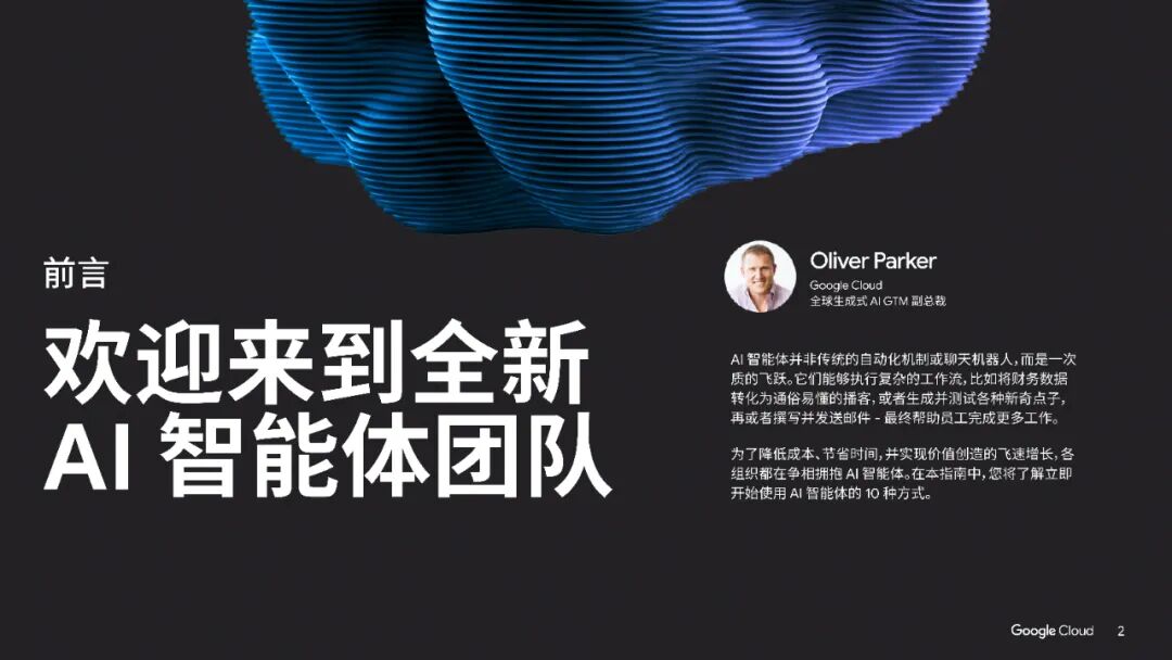 本手册《AI智能体手册》由Google Cloud发布,旨在展示如何利用AI智能体提升企业效率与创新能力。