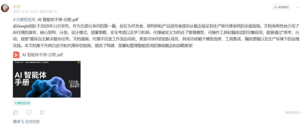 - 工程落地:《从原型到生产:AgentOps 加速字节 AI 应用落地》《智能代码助手 CodeFuse 的架构设计》。