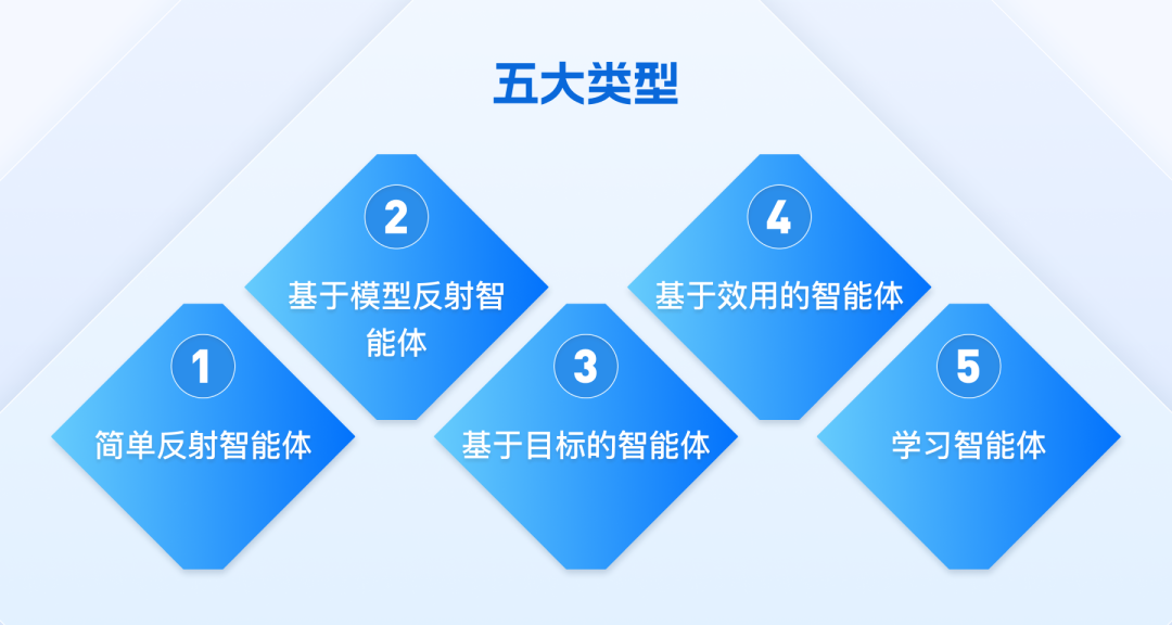 AI智能体可开发出不同程度的能力。按照从最简单到最先进的顺序进行排序,共有5大智能体类型: