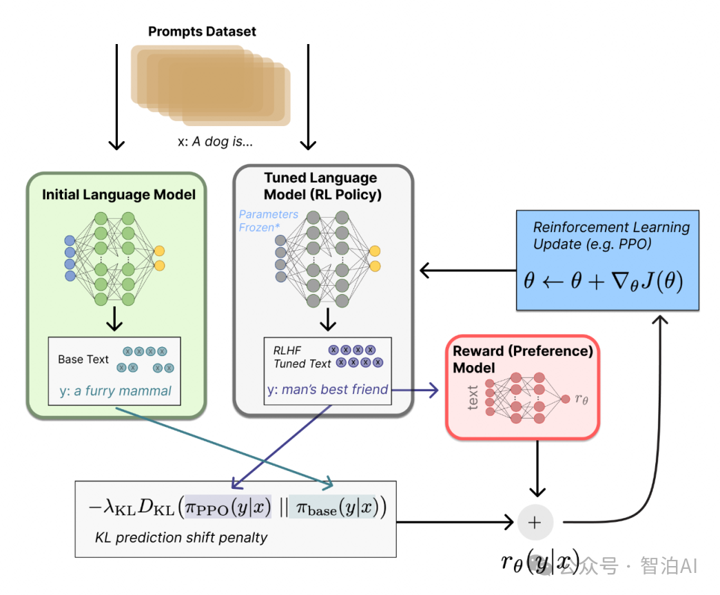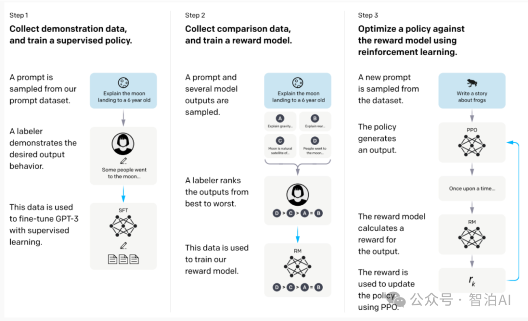 通过记录所有生成的模型,以及评分指标(隐性和显性用户的反馈,以及人类和人工智能的评估),从而为下一版本创建的训练数据集进行调整。