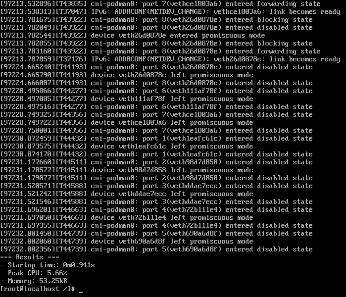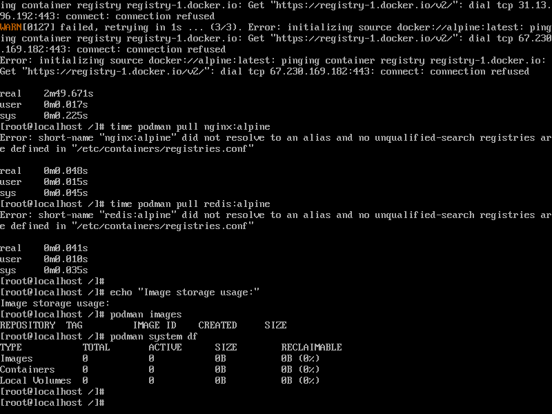 time podman run --rm alpine echo "cold_start_test"