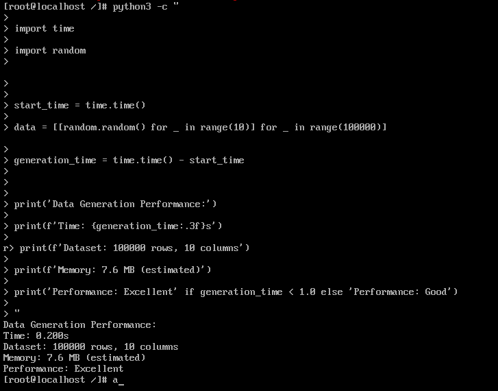print('Performance: Excellent' if generation_time < 1.0 else 'Performance: Good')