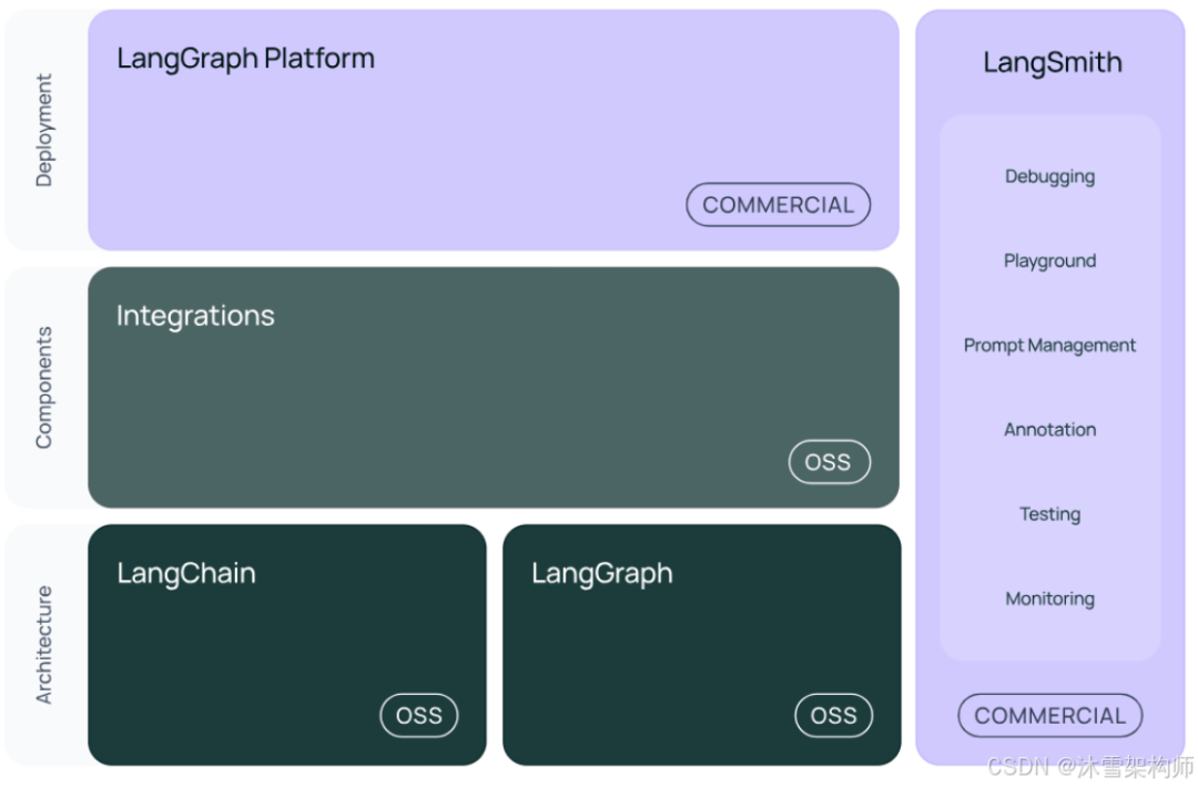 LangChain是构建大语言模型应用的开源框架,通过简化LLM与外部数据和工具的集成,帮助开发者创建复杂AI应用。其架构包括LangChain核心框架、LangGraph复杂任务协调、LangSmith链路追踪和LangServe服务部署。六大核心组件Model I/O、Chains、Memory、Agents、Retrieval和Callbacks提供了从模型输入输出到记忆、智能体、数据检索和回调机制的全面功能,使开发者能够构建高效、上下文感知的AI应用。