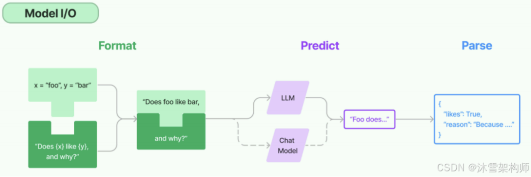 - Predict(预测) :即指代Models,使用通用接口调用不同的大语言模型。接受被送进来的问题,然后基于这个问题进行预测或生成回答。