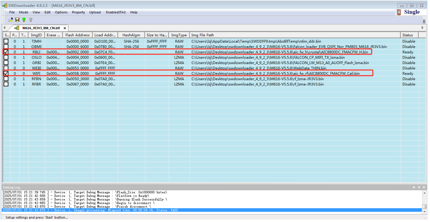 首先升级对于模组常规固件,然后升级WIFI定频测试固件