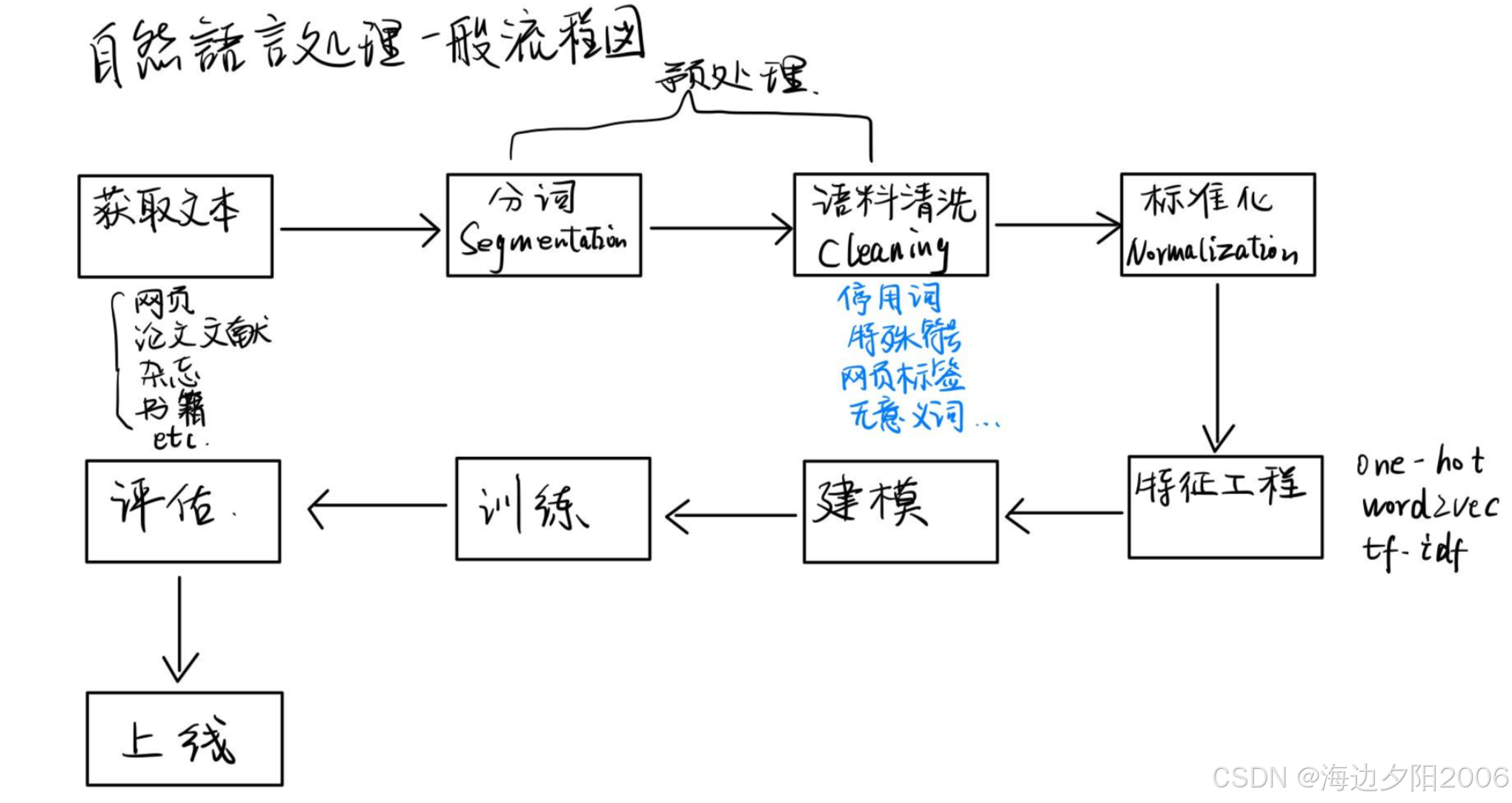 | 机器学习 | 从数据中学习模式 | NLP的核心技术手段 |