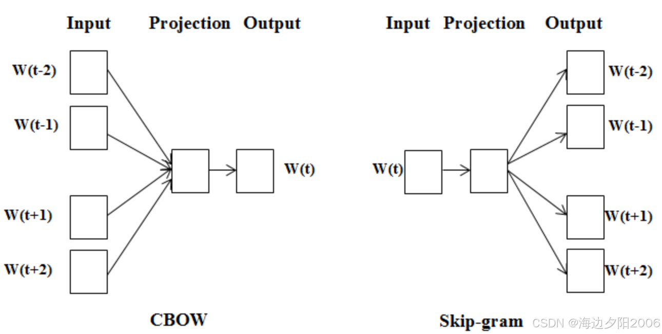 - Word2Vec:通过神经网络将单词表示为低维向量,语义相似的单词在向量空间中距离较近