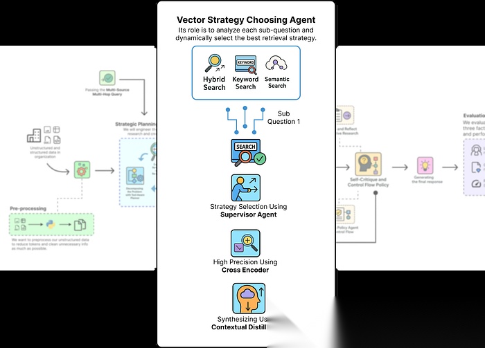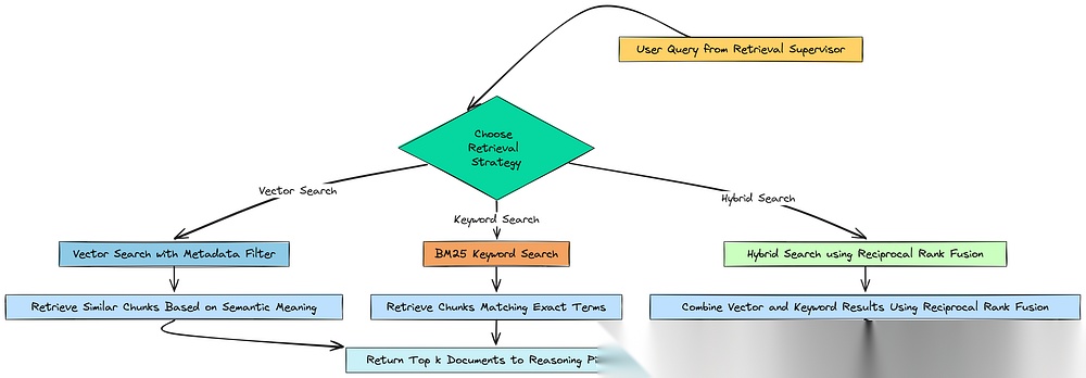 - 检索 (Retrieve): 对于每一步,它会执行一个自适应的多阶段检索漏斗,使用一个监督器(supervisor)来动态选择最佳的搜索策略(向量、关键词或混合搜索)。