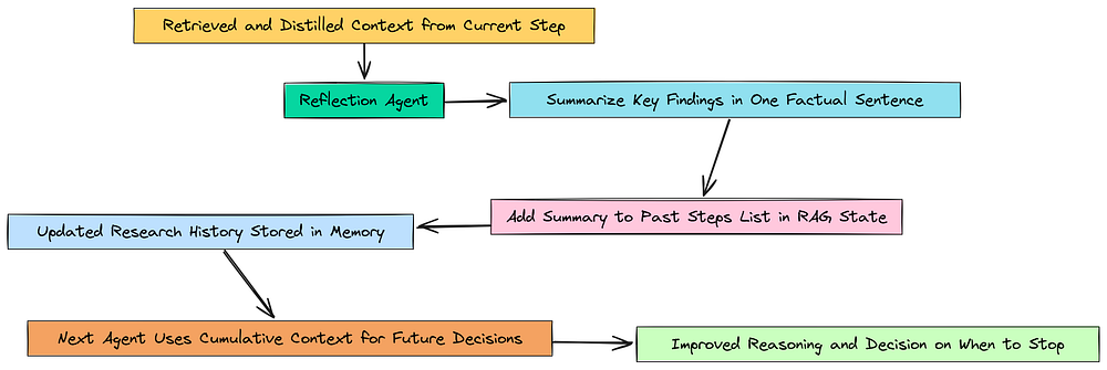 - 反思 (Reflect): 每一步之后,智能体都会总结其发现并更新其研究历史,从而逐步建立对问题的累积理解。
