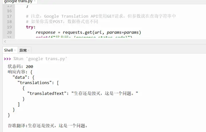 # 注意:Google Translation API使用GET请求,但参数放在查询字符串中