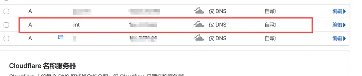 可以从namesilo上买一个域名,一二刀就可以,然后把DNS改成cloudflare的DNS,在cloudflare上给网站设置一个A记录:mt,然后填入你购买的服务器的ip,这样可以把这个http://mt.yourdomain.com解析到你新买的服务器上面。