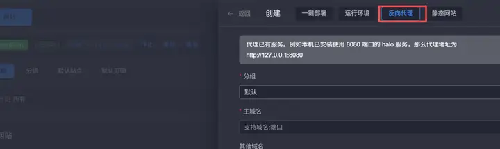 在1panel上面,选择网站-网站-反向代理,然后创建一个反向代理。