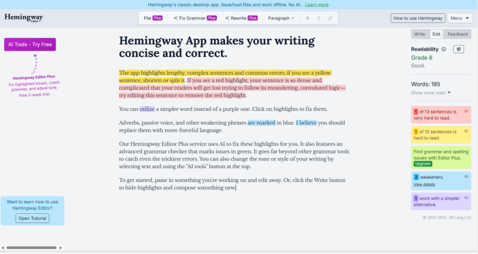 - Hemingway Editor:提升论文可读性,让表达更清晰有力