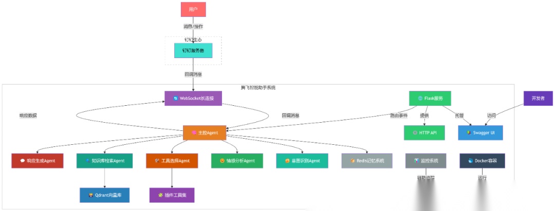 腾飞智能助手(开源版)是基于钉钉平台的AI助手,集成了大型语言模型、知识库、记忆系统和多种工具能力,提供智能问答、任务处理和信息检索服务。旨在引导学习者从基础入门逐步进阶至能够独立完成企业级项目的水平。课程内容涵盖系统架构设计、开发环境配置、核心业务逻辑实现及生产环境部署的全流程。