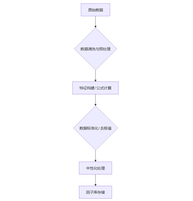 原始数据无法直接喂给模型。因子(Factor)是连接数据和模型的桥梁。它是一个经过计算和编码的数值序列,旨在捕捉市场的某种特定规律或驱动资产价格变动的某个维度。构建因子库是量化研究中最核心、最耗时的工作。