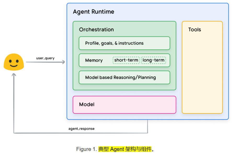 - 核心组件:模型(大脑)、工具(手脚)、编排层(调度器),共同形成任务执行闭环。
