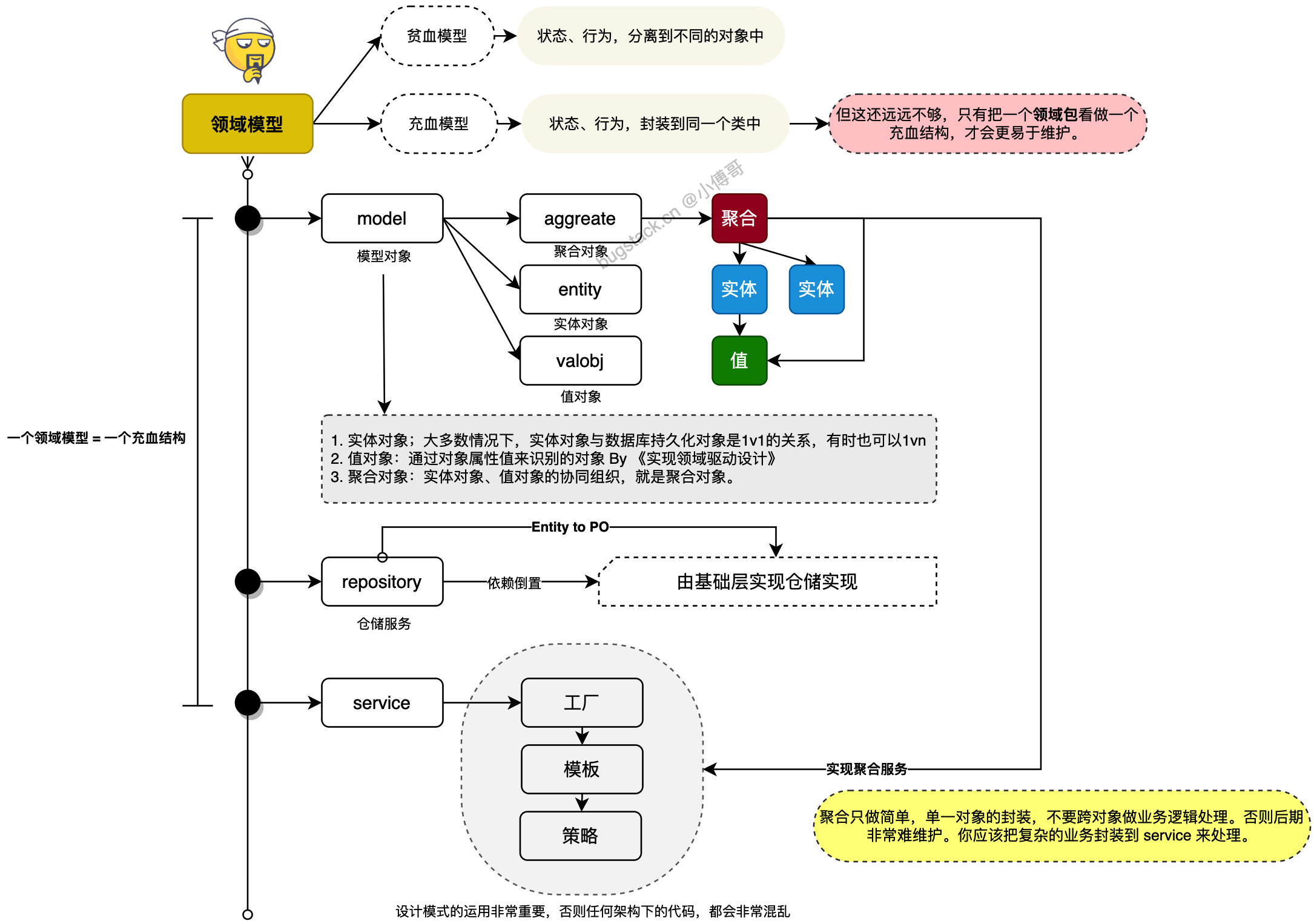 - 值对象 :无 ID,不可变,无生命周期,用完即扔