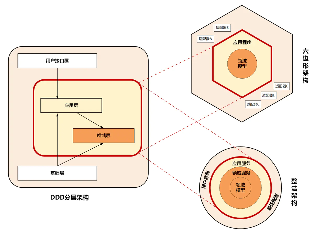 领域驱动设计,即Domain Driven Design(DDD)。DDD是一套完整而系统的设计理论与方法,使得你的设计思路能够更加清晰,设计过程更加规范。DDD 善于处理与领域相关的拥有高复杂度业务的产品开发总之,DDD是专门为解决复杂性而诞生一套完整的理论方法DDD落地实现离不开Clean架构、六边形架构、CQRS、Event Source等思想。六边形架构的优势在于它的灵活性和可测试性。通过