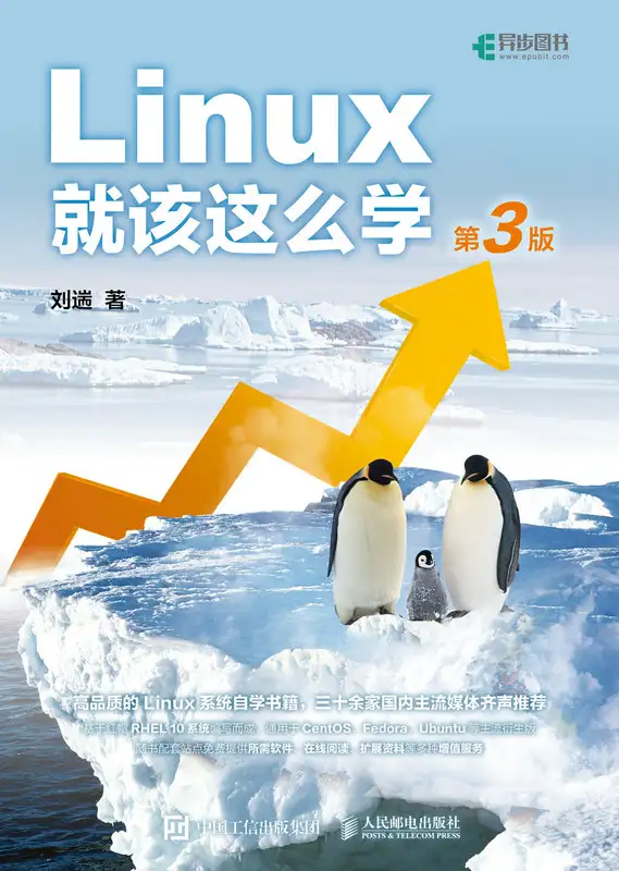 本书在上一版的基础上进行了大量的更新,基于红帽RHEL 10系统编写,且内容通用于 CentOS、Fedora等系统。本书共分为 20章,内容涵盖了部署Linux系统,常用的Linux 命令,与文件读写操作有关的技术,使用Vim编辑器编写和修改配置文件,用户身份与文件权限的设置,硬盘设备分区、格式化以及挂载等操作,部署RAID磁盘阵列和LVM,使用firewalld防火墙保障网络安全,使用SSH服务管理远程主机,使用Apache服务部署静态网站,使用vsftpd服务传输文件,使用Samba或NFS实现文件共享,使用BIND提供域名解析服务,使用DHCP动态管理主机地址,使用Postfix与Dovecot部署邮件系统,使用Ansible服务实现自动化运维,使用iSCSI服务部署网络存储,使用MariaDB数据库管理系统,使用PXE+Kickstart无人值守安装服务,使用LNMP架构部署动态网站环境等。此外,每章均配有丰富的图、表、命令示例及复习题,旨在增强学习兴趣并加深理解。在阅读本书的同时,读者还可以同步完成所有实验操作,切实提升动手实操能力。
