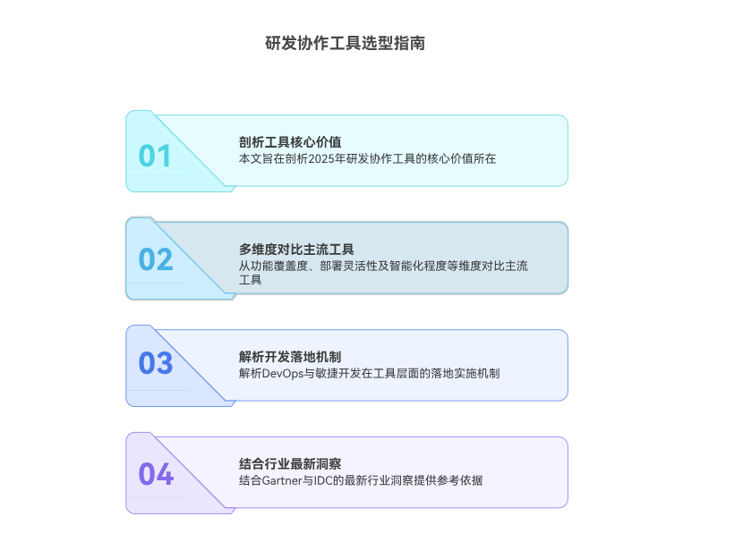 本文旨在剖析2025年研发协作工具的核心价值。我们将从功能覆盖度、部署灵活性及智能化程度等维度,对主流工具进行深度对比与推荐。通过解析DevOps与敏捷开发在工具层面的落地机制,结合Gartner与IDC的最新行业洞察,帮助企业构建高效的数字化研发生产线。