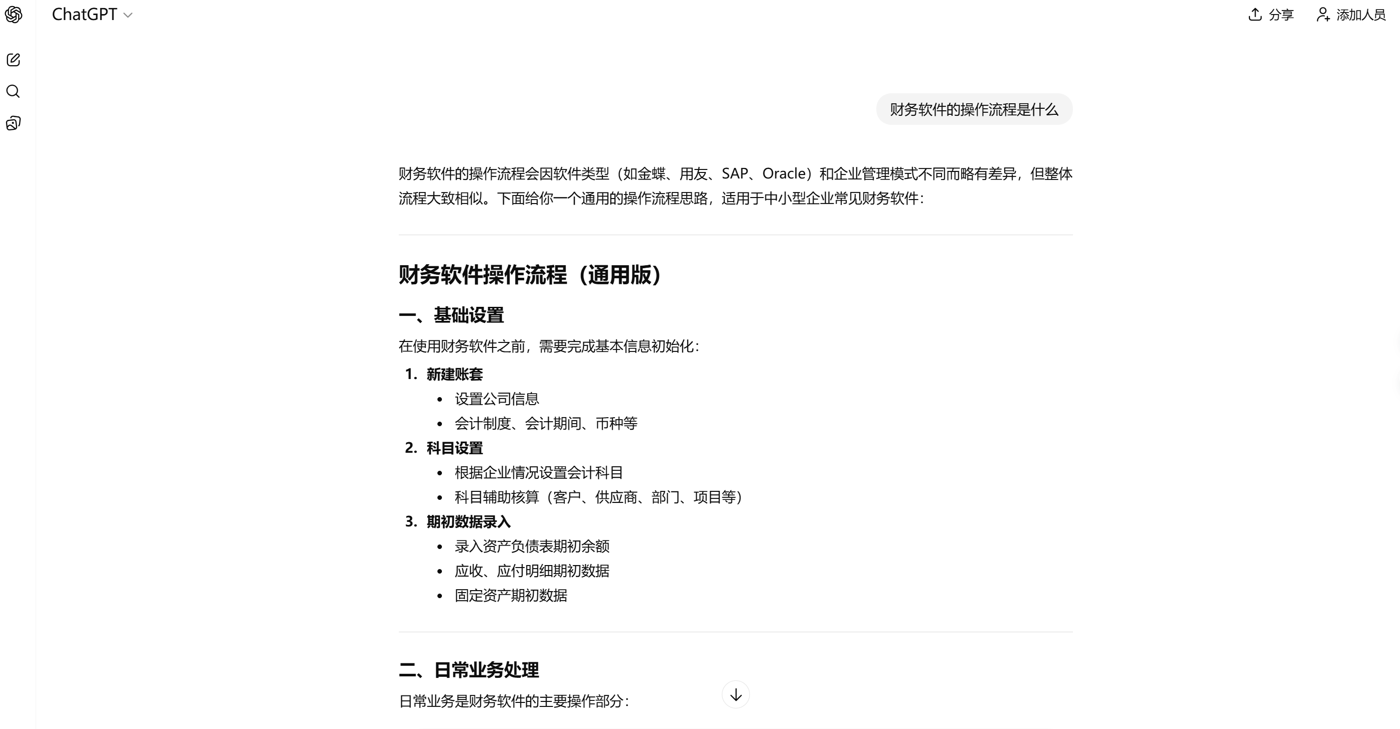 操作财务软件的流程包括登录系统、设置账目、输入交易数据、进行账目调整,以及生成和查看财务报表等。虽然初次接触可能会感到有一些复杂,但是只要掌握了基本操作,就会很容易上手最基本的,可以提问ChatGPT财务软件的操作流程是什么。可以把财务软件的官方教程或者用户手册交给ChatGPT。