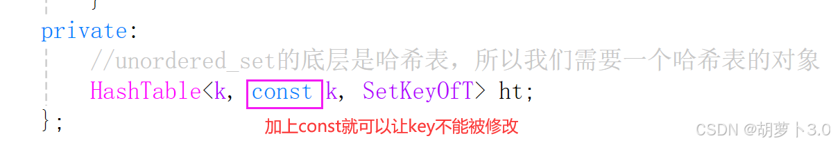 HashTable<k, const k, SetKeyOfT, hash> ht;