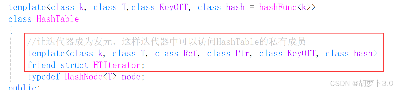//让迭代器成为友元,这样迭代器中可以访问HashTable的私有成员