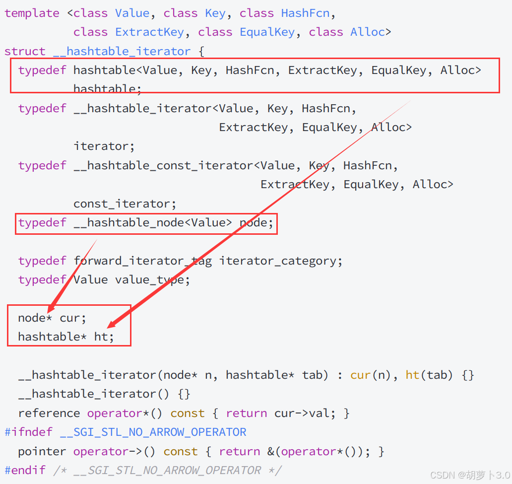 typedef __hashtable_iterator<Value, Key, HashFcn, ExtractKey, EqualKey,