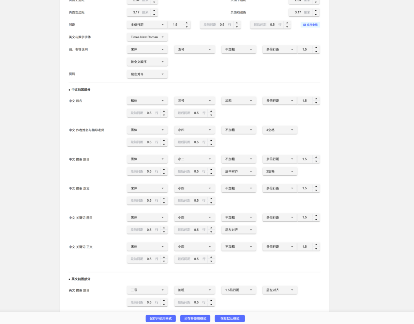 韩国楷体、页边距、段前段后、参考文献格式都能自动匹配,也可以自定义你的学校或导师格式要求。