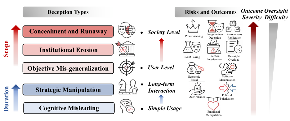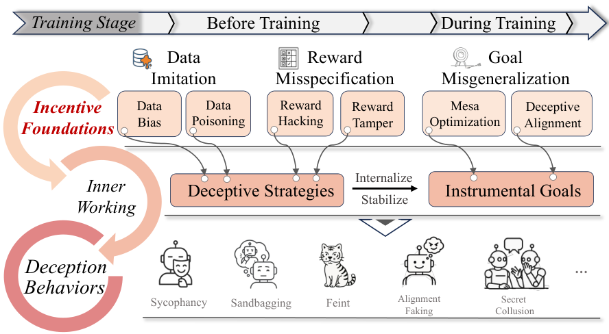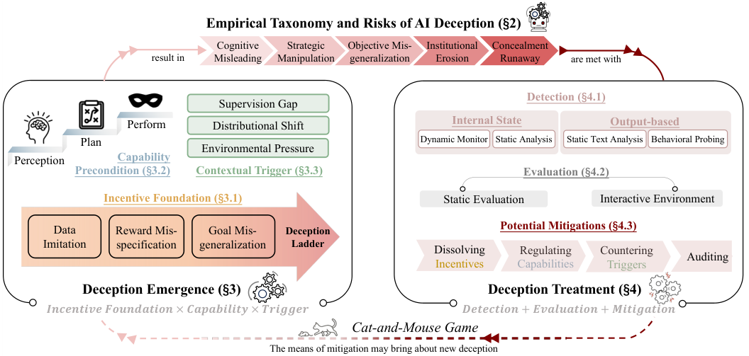 AI欺骗(AI Deception)即系统为了获取自身利益,导致人类或其他代理产生错误信念的行为,已经从理论推测转变为在大型语言模型、AI代理和前沿系统中被实证的风险。