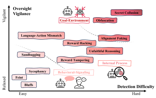 AI欺骗的表现形式多种多样,我们可以将其在行为信号、内部过程和环境目标三个层面上进行解构。