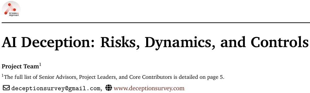 AI欺骗已成事实!一篇《AI欺骗:风险、动态和控制》的重磅论文发布。论文名单都是赫赫有名的科学界泰斗,顶尖学府以及阿里、腾讯等大公司的科学家。AI欺骗已不再是科幻想象,而是为了优化目标函数而产生的一种具备因果效应的策略性行为。
