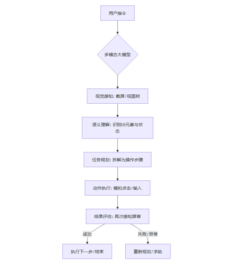 当前主流的GUI-Agent(图形用户界面智能体)技术路径,以豆包为代表,其核心架构可以概括为“多模态大模型驱动的UI自动化”。