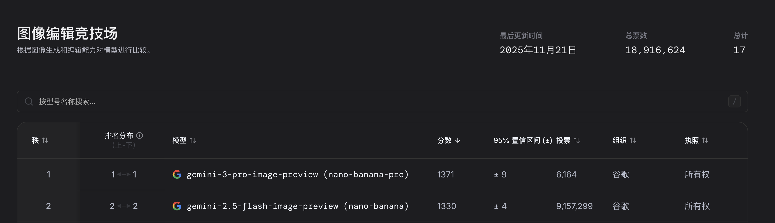 目前 Nano Banana Pro 在 LMArena 图片编辑模型排行榜中排名第一,而第二是 Nano Banana,可谓是断层领先了。