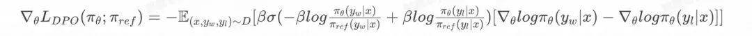 因此DPO的优化目的可以理解为通过训练, 最大化正样本上的奖励 和负样本上的奖励两者的间距(margin)。 因为参考模型是不动的,因此进一步可以理解为提升模型在正样本上的概率(优化模型在正样本上的概率 大于 参考模型在正样本上的概率), 降低模型在负样本上的概率(优化模型在负样本上的概率 小于 参考模型在负样本上的概率)。
