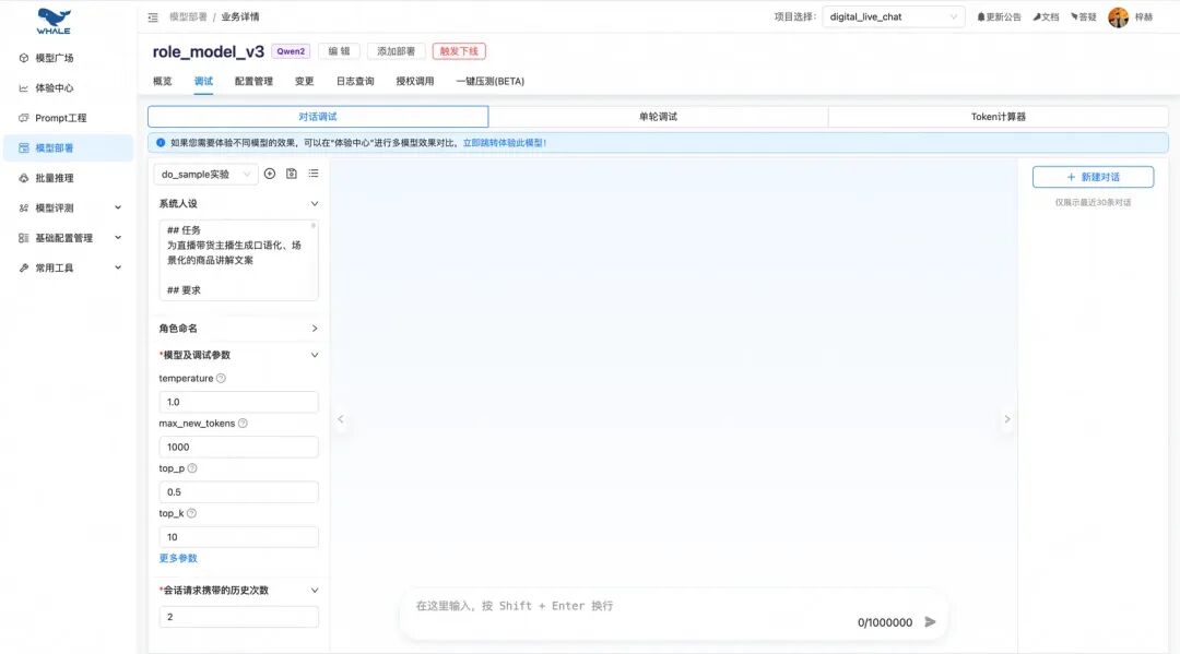 在这里可以指定训练的lora checkpoint到指定的项目存储路径,后续可以在whale平台直接调用,非常方便。