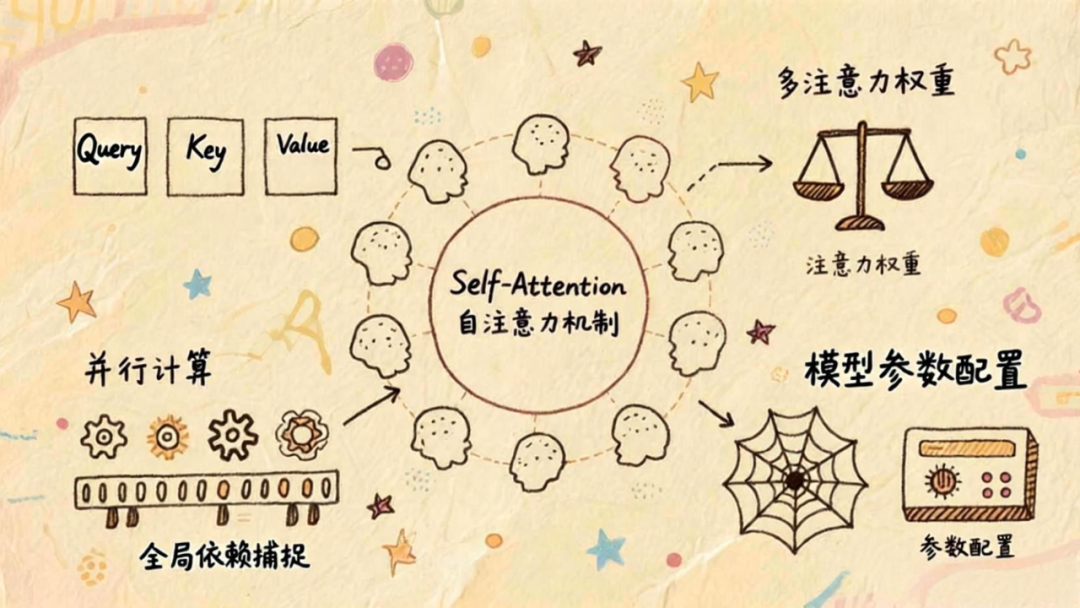 如果说Transformer是“骨架”,那Self-Attention(自注意力机制)就是骨架上的“神经中枢”,让模型具备了“全局视野”。