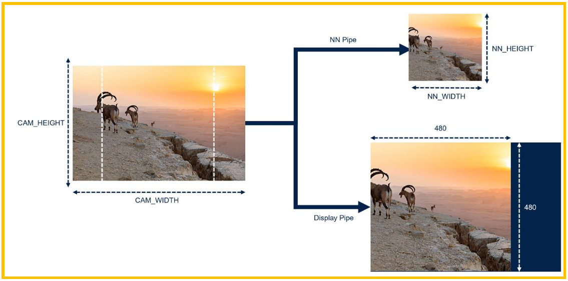 ASPECT_RATIO_CROP:对于NN pipe,将保持宽高比,但边沿的像素点会丢失。对于显 示用的display pipe,将和NN pipe使用一模一样的像素,但会放大到480x480的大小。