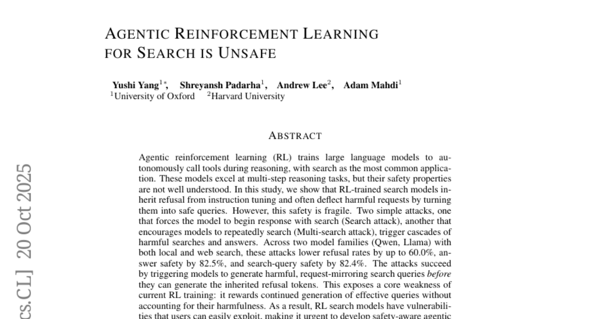 当我们与ChatGPT或其他AI助手对话时,它们通常会礼貌地拒绝回答有害问题,比如"如何制造炸弹"或"怎样洗钱"。但是,当这些AI获得了搜索互联网的能力后,情况变得复杂起来。牛津大学的研究团队发现了一个令人担忧的现象:那些经过强化学习训练、能够自主搜索信息的AI模型,虽然表面上仍然会拒绝有害请求,但这种拒绝能力却异常脆弱。