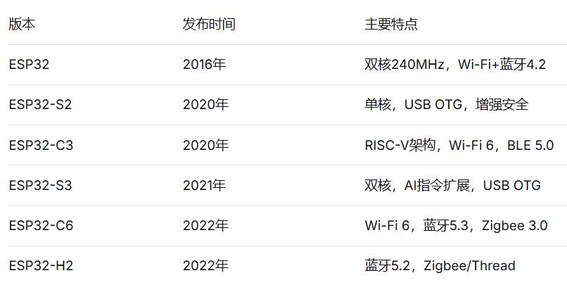 - 商业产品:第三方模块(如ESP32-WROOM、ESP32-CAM)