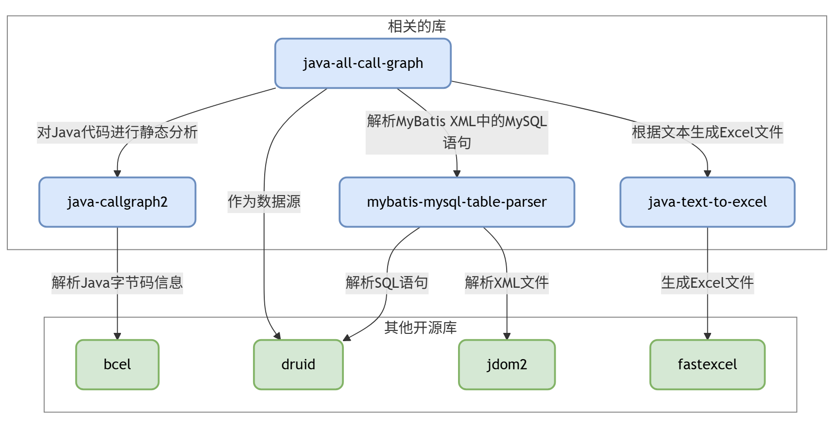 java-all-call-graph 依赖 mybatis-mysql-table-parser,用于解析 MyBatis XML 中的 MySQL 语句