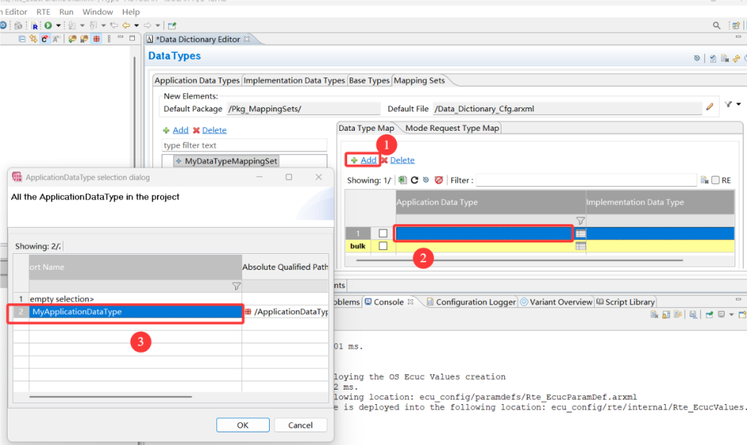 点击1处Add,并双击2处,选择3处,再点击 OK。