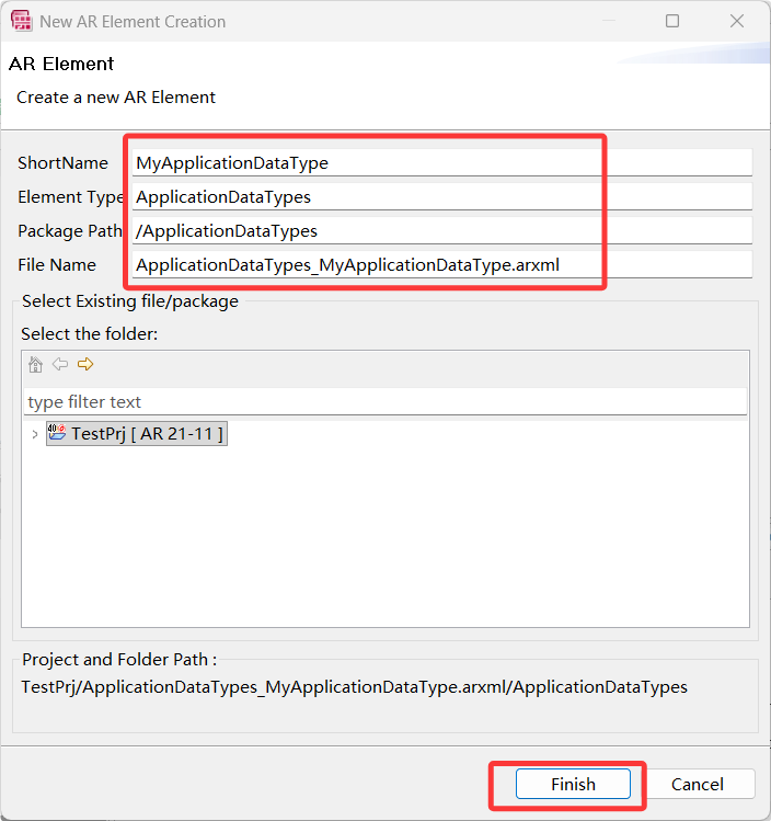 自动弹出“New AR Elem ent Creatio”对话框,