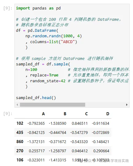# 使用 sample 方法对 DataFrame 进行随机抽样