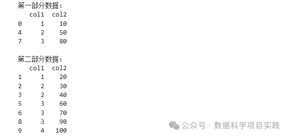 # 存储抽样后的两部分数据